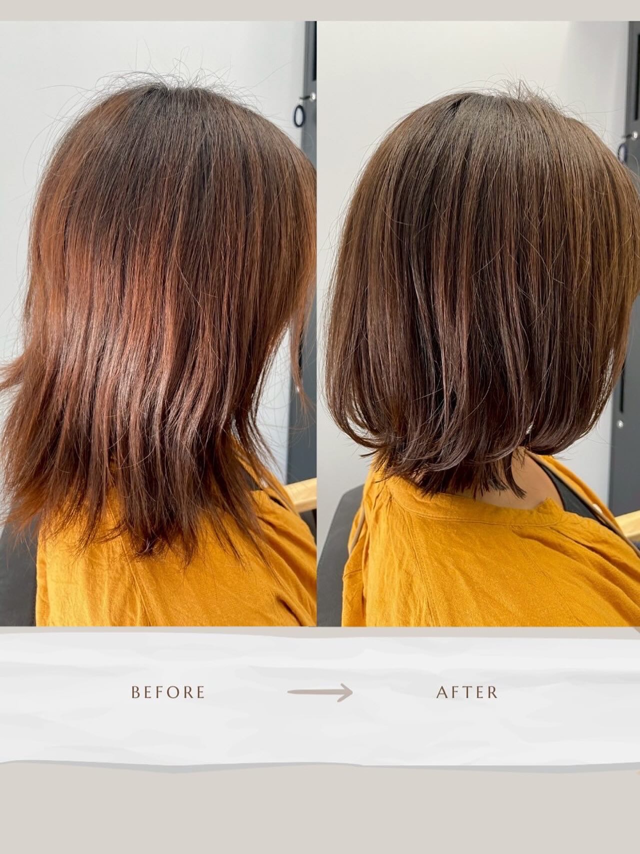 お家のアイロンで外ハネでも内巻きでも可愛くスタイリングできる長さです‍♀️🧡