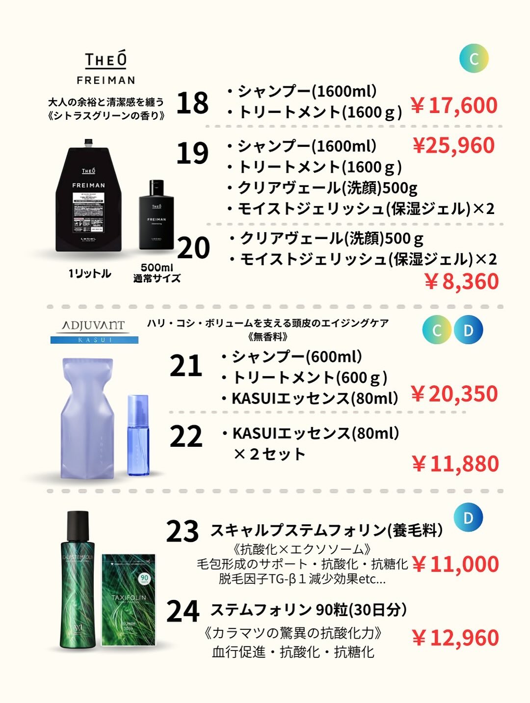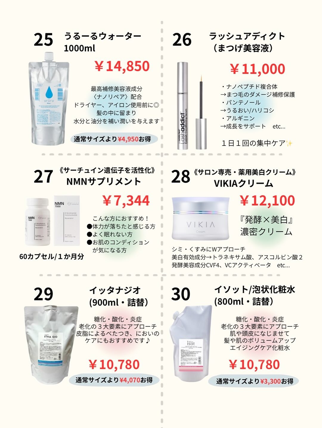 シャンプーやトリートメント、アウトバスやアイロンドライヤーなどなど盛りだくさんの内容となっております!!
